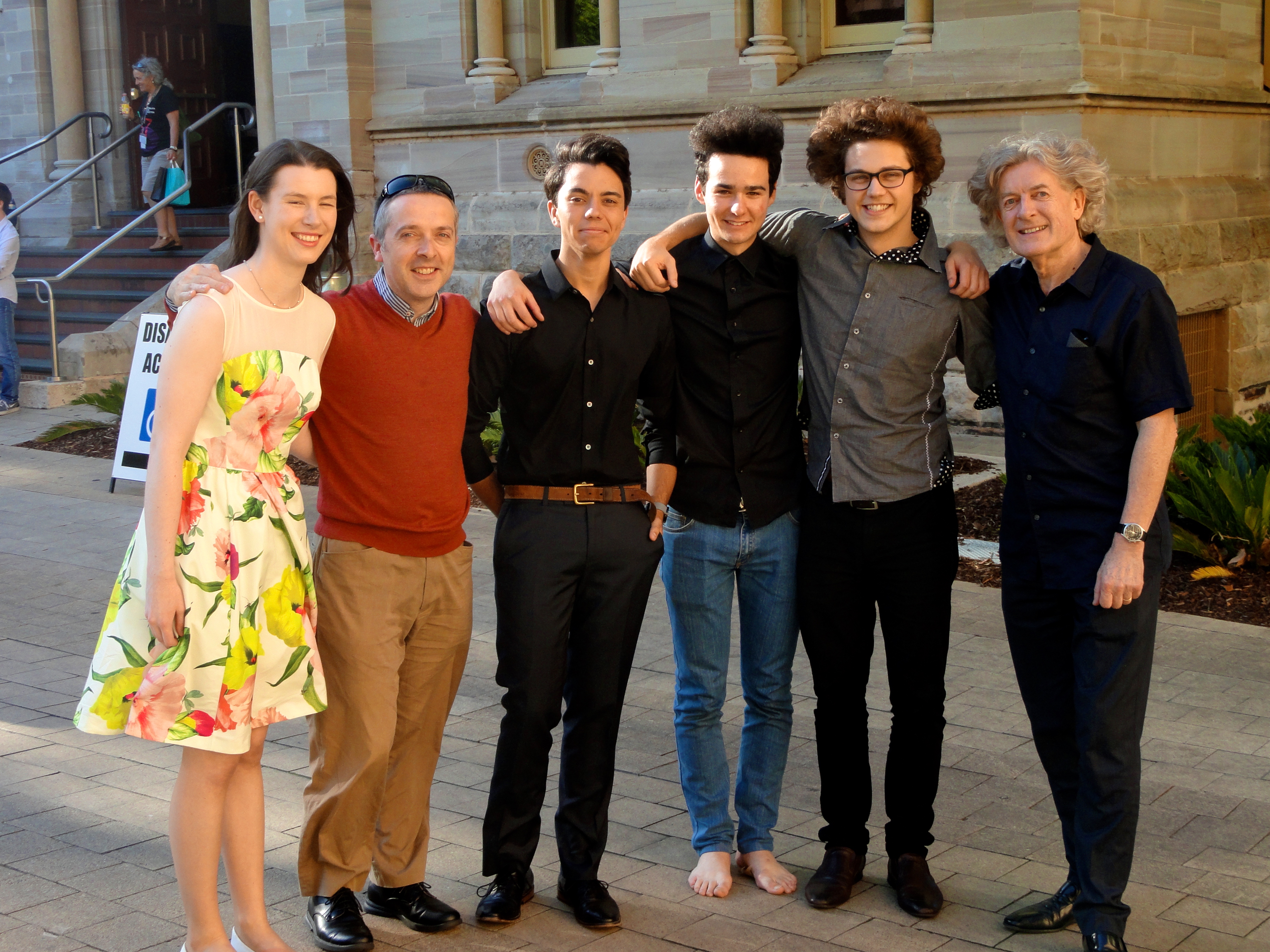 Graduating composers of the Queensland Conservatorium of Music 2014: (Left to right) Erik Griswold (Tutor), Tim Hondroudakis, Jakob Bragg, Kate Hamill, Nick Rossi & Matthew Schwarz.